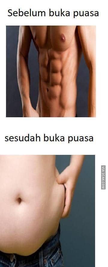 Pasti banyak yang merasa begini juga, kan? Pas puasa berasa sixpack, setelah buka puasa malah buncit lagi