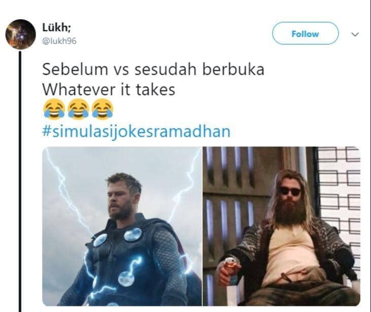 Penampilan tokoh fiksi seperti Thor juga bisa menjadi bahan olok-olok ketika mereka terlihat gemuk setelah buka puasa. -