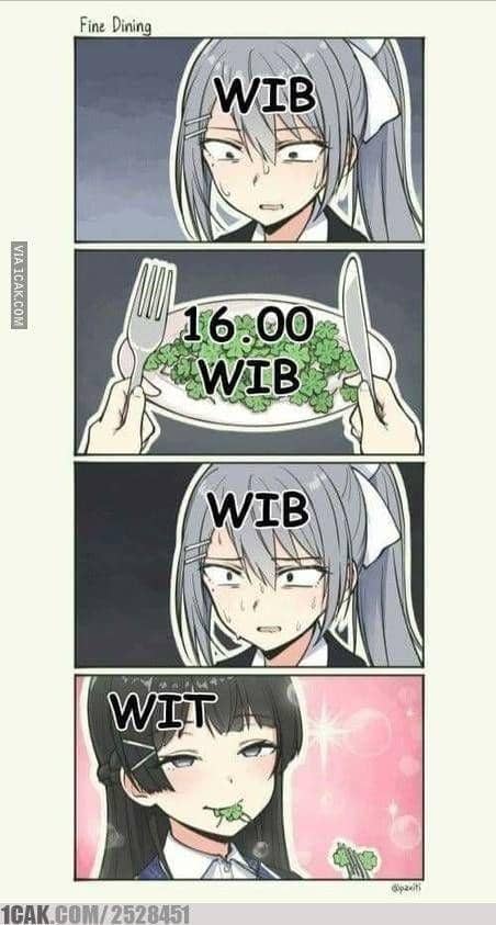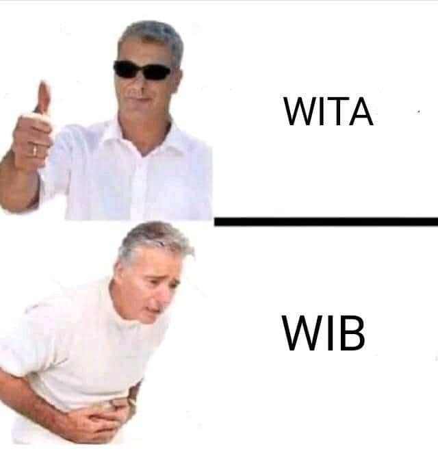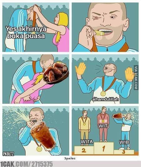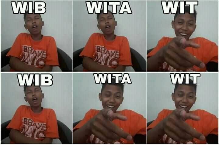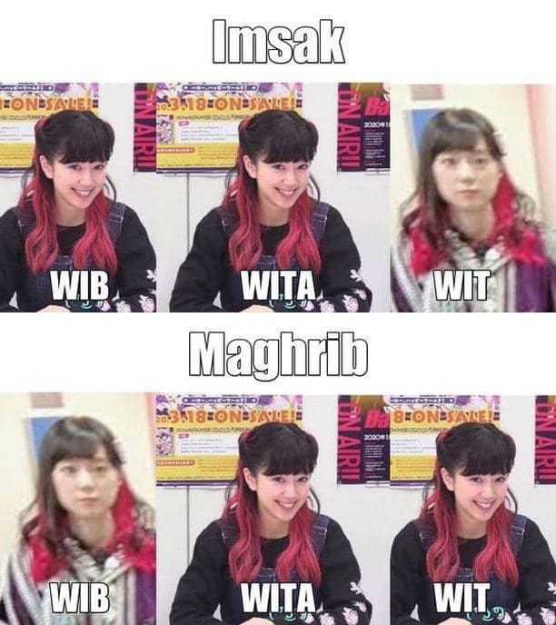 Saat berbuka puasa, WIB merasa senang akhirnya bisa makan, padahal sebenarnya WIT dan WITA sudah kenyang duluan.