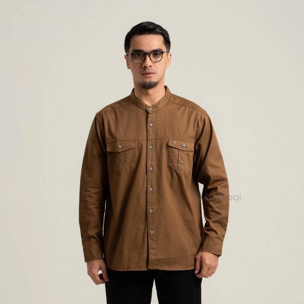 Kemeja koko ini menggunakan material cotton linen yang lembut dan bernapas, cocok untuk aktivitas ibadah maupun formal. Kerah Shanghai Collar memberikan kesan rapi dan berwibawa, sedangkan potongan regular fit memudahkan gerak. Tersedia dalam tiga varian warna, yaitu khaki, walnut, dan beige dengan harga Rp185.000.