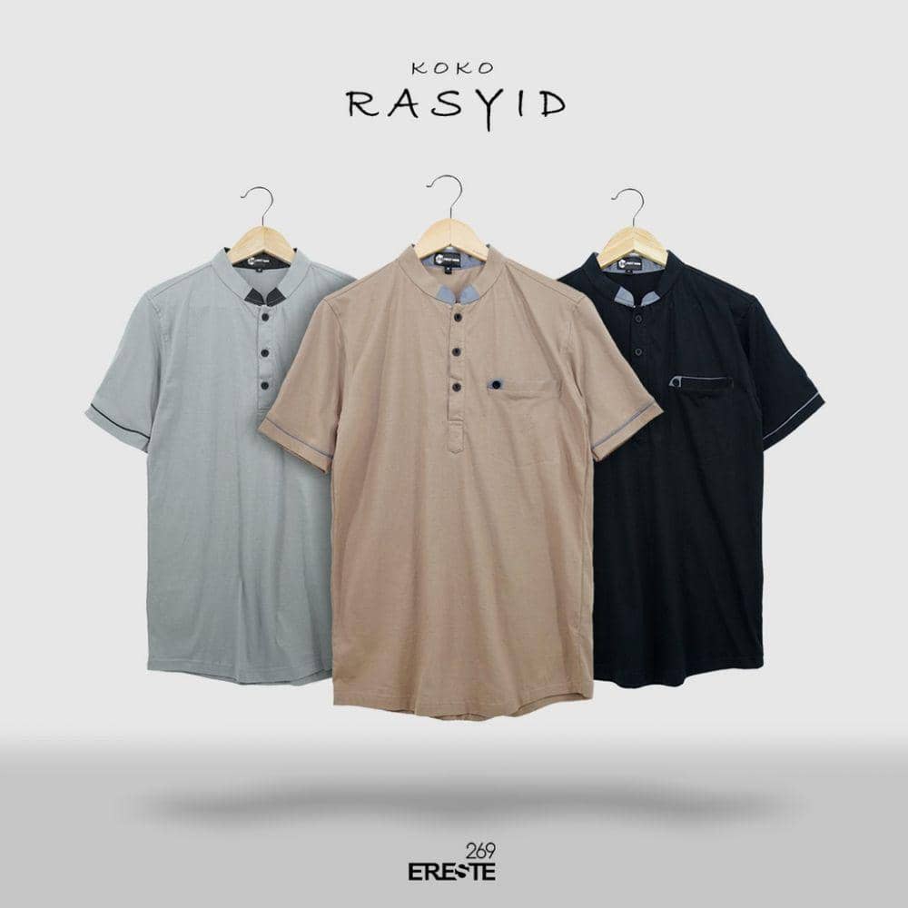 Baju koko kurta dari merek Ereste269 memiliki bahan seperti kaus, sehingga sangat nyaman, tidak panas, dan fleksibel ketika dipakai. Di bagian dada depan juga terdapat saku dan motif garis pada lengan yang membuat desainnya lebih menarik.