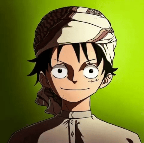 Ternyata, Luffy cocok juga memakai sorban dan gamis seperti orang-orang di Timur Tengah.