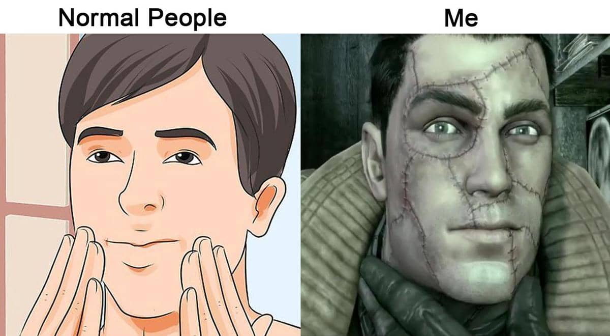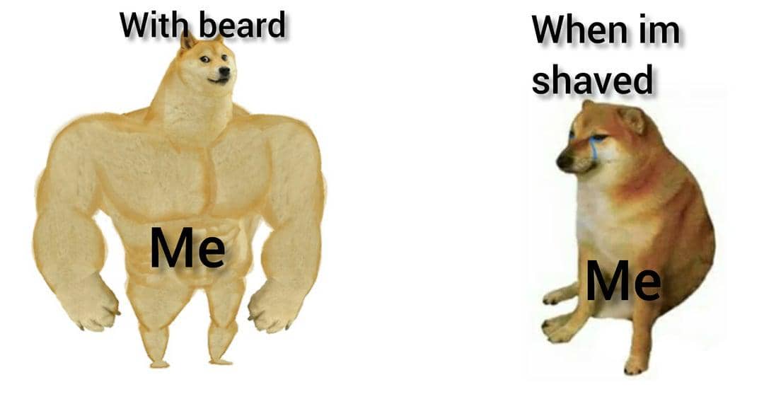 Meme ini menggambarkan perasaan aneh saat dagu terlihat jelas setelah dicukur. Bagi sebagian orang, hal ini terasa tidak nyaman dan kurang enak dilihat. -