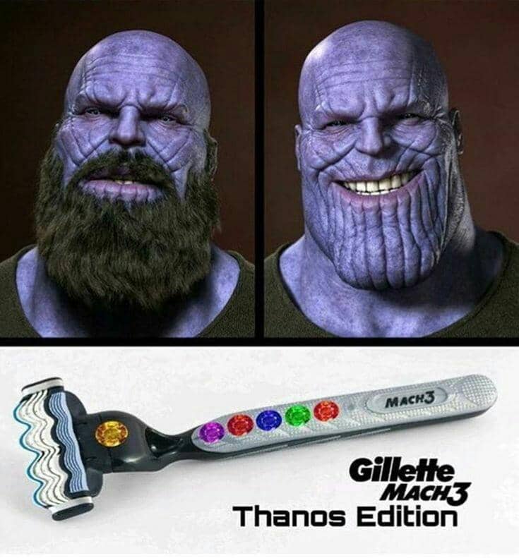 Ini ngapain Thanos ikut-ikutan cukuran juga, hei? Mana ada cukuran versi Thanos pula. Ngakak!