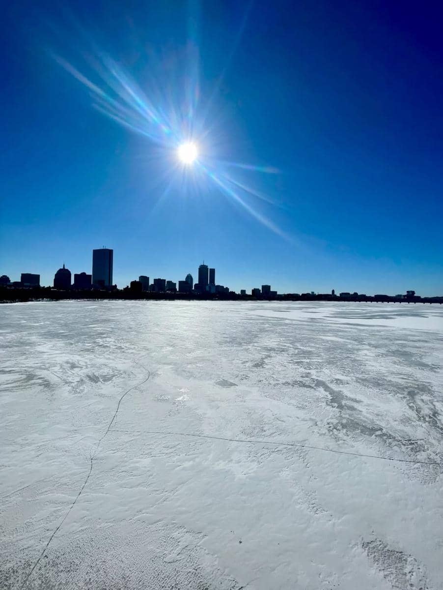 Di musim dingin, Sungai Charles terlihat sangat indah karena airnya membeku dan menjadi es