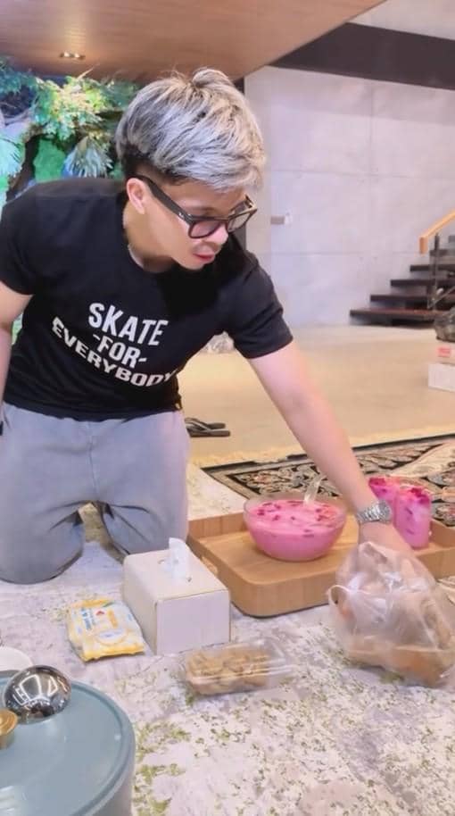 Ayah dua anak ini juga membeli beberapa jajanan kaki lima di dekat rumahnya, termasuk batagor dan dimsum