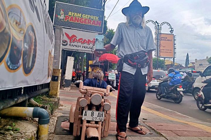 Awalnya ia hanya mengamen dengan boneka. Sedikit demi sedikit, ia menabung hingga mampu merakit motor mainan sebagai penopang pertunjukan kecilnya. Kini, meski beberapa bagian sudah mulai rusak, ia tetap setia merawat hasil karyanya sendiri.