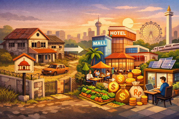 Ambil contoh tanah milik pemda yang berada di lokasi strategis di pusat kota. Alih-alih dibiarkan kosong atau hanya disewakan dengan tarif minimal, lahan tersebut bisa dikembangkan melalui skema Kerja Sama Pemanfaatan (KSP) dengan pihak swasta untuk pusat komersial, hotel, rumah susun, atau kawasan terpadu yang mendukung UMKM lokal. Dengan model bagi hasil yang transparan dan berbasis valuasi wajar, daerah bisa memperoleh pendapatan rutin tanpa harus mengeluarkan belanja modal besar.