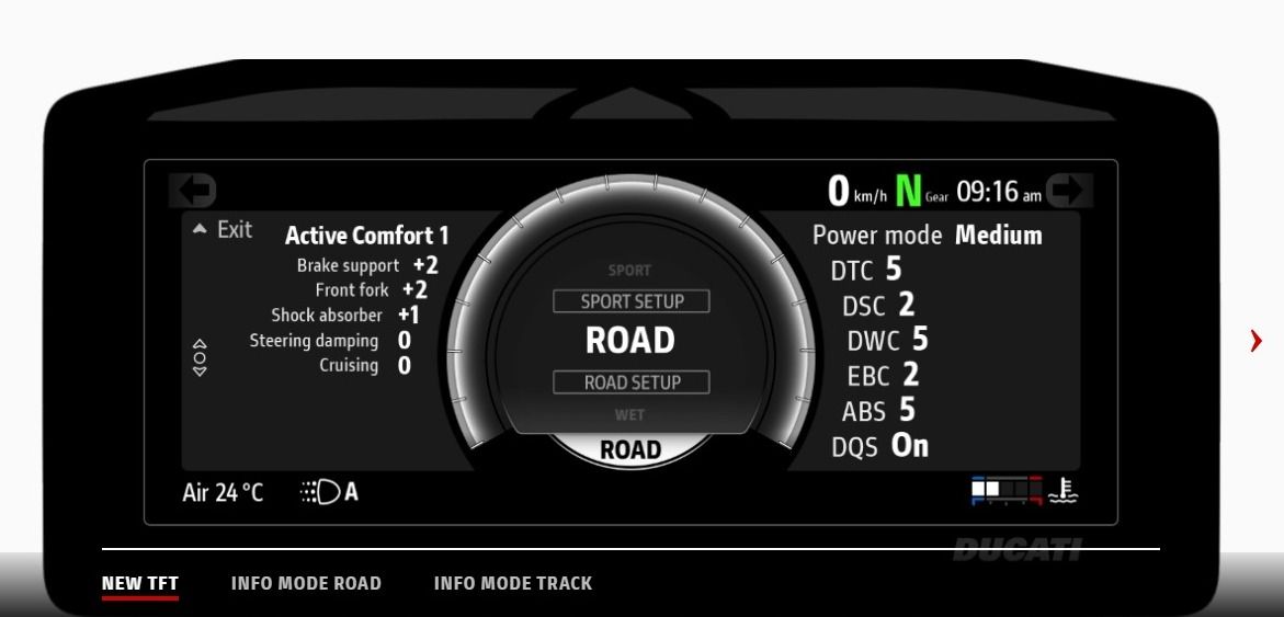 Untuk mendukung fitur ini, beberapa model Ducati dilengkapi dengan 70 sensor virtual yang bertugas memantau perilaku motor. Hasil pemantauan ini menjadi masukan bagi sistem seperti Ducati Traction Control (DTC), Ducati Wheelie Control (DWP), dan Ducati Power Launch (DPL).