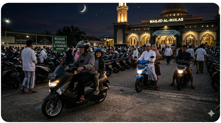 Ramadhan selalu membawa suasana yang khusuk dan penuh makna. Di jalan-jalan kecil kampung atau kota, tampak jamaah berbondong-bondong menuju masjid atau mushalla untuk melaksanakan shalat tarawih. Pemandangan ini menjadi simbol kebersamaan dan semangat ibadah. Namun di balik keindahan itu, terdapat ironi yang sering kali luput dari perhatian: banyak jamaah, bahkan ustadz sekalipun, datang dengan menggunakan sepeda motor tanpa mengenakan helm. Alasannya sederhana, seperti jarak dekat, tidak ada polisi, atau karena malam hari tidak ada razia. Tetapi alasan-alasan ini justru rapuh dan tidak logis.