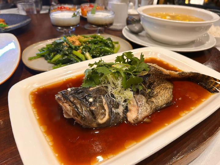 Steamed garoupa fish Hong Kong style, menu ikan kerapu kukus dengan bumbu sederhana, salah satu sajian menu berbuka di TWELVE Chinese Dining