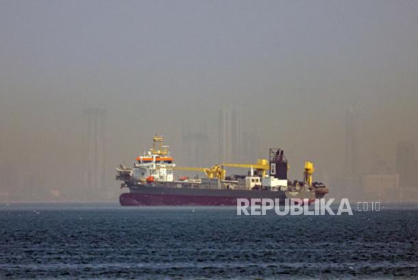 Sebuah kapal terlihat berlabuh di lepas pantai Dubai, Uni Emirat Arab, 1 Maret 2026. Menyusul operasi militer gabungan Israel-AS yang menargetkan beberapa lokasi di Iran pada dini hari tanggal 28 Februari 2026 dan serangan balasan Iran di seluruh wilayah tersebut, banyak kapal berlabuh karena Iran mengancam akan menutup Selat Hormuz, tempat ratusan kapal pengangkut minyak melintas setiap hari, yang berpotensi memengaruhi perdagangan dunia. – (EPA/STRINGER)
