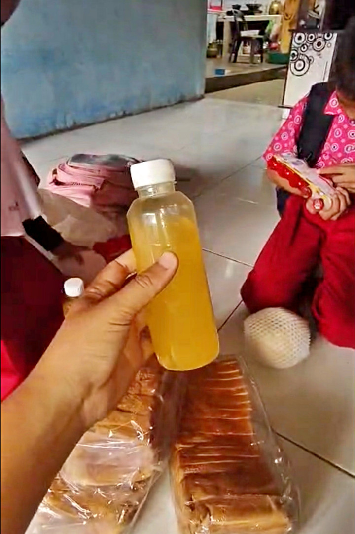 “Alhamdulillah,” ucap sang ibu, yang langsung disambut dua anak perempuannya dengan penuh suka cita. Sang ibu kemudian mengarahkan kamera ke anak laki-lakinya yang juga tengah membuka paket MBG. Isi paket yang diterimanya sama: satu bungkus roti tawar, satu botol jus jeruk, lima botol susu fermentasi, serta satu buah pir berukuran besar.