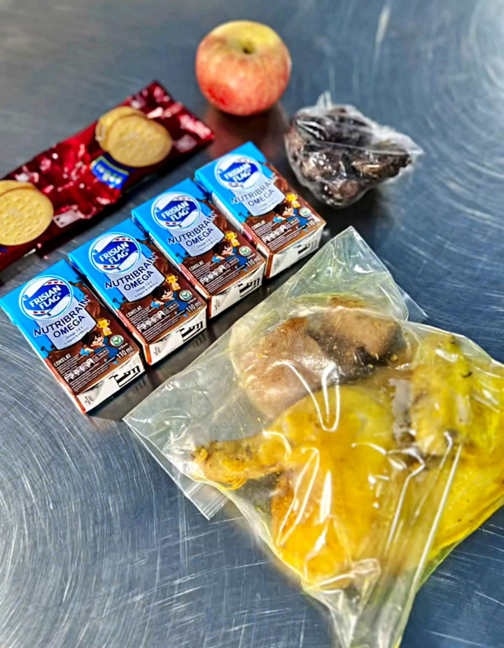Tak hanya ayam, dapur MBG ini juga menyertakan menu lainnya yakni biskuit, apel, kurma, dan susu. Paket itu ditata rapat dan rapi agar tak mudah terkontaminasi. Semua petugas di SPPG bahu-membahu menyiapkan menu hari itu. “Ini bukan sekadar packing makanan. Ini tentang gotong-royong dan kepedulian.”