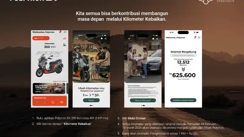 Head of Group Product EV 2-Wheels Polytron, Ilman Fachrian Fadly, menyampaikan bahwa tahun 2026 menjadi tahun kedua pelaksanaan program #KilometerKebaikan. Pada tahun sebelumnya, Polytron berhasil menggalang donasi sebesar Rp150 juta dari kampanye serupa.