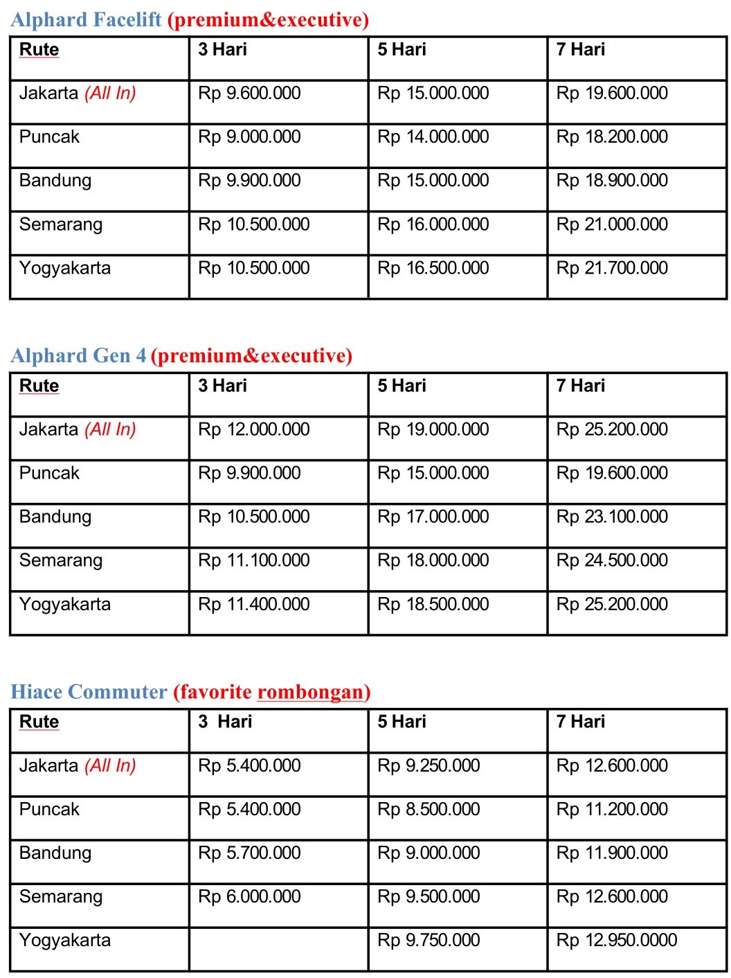 Nah ini dia pricelist paket Lebaran 2026 di Alva Rental Mobil :