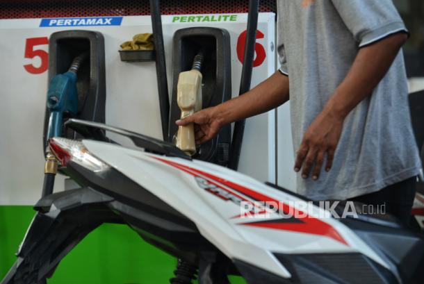 Pengendara mengisi bahan bakar minyak (BBM) jenis pertalite di SPBU di kawasan Jalan Pemuda, Rawamangun, Jakarta Timur, Senin (13/5/2024). – (/Thoudy Badai)