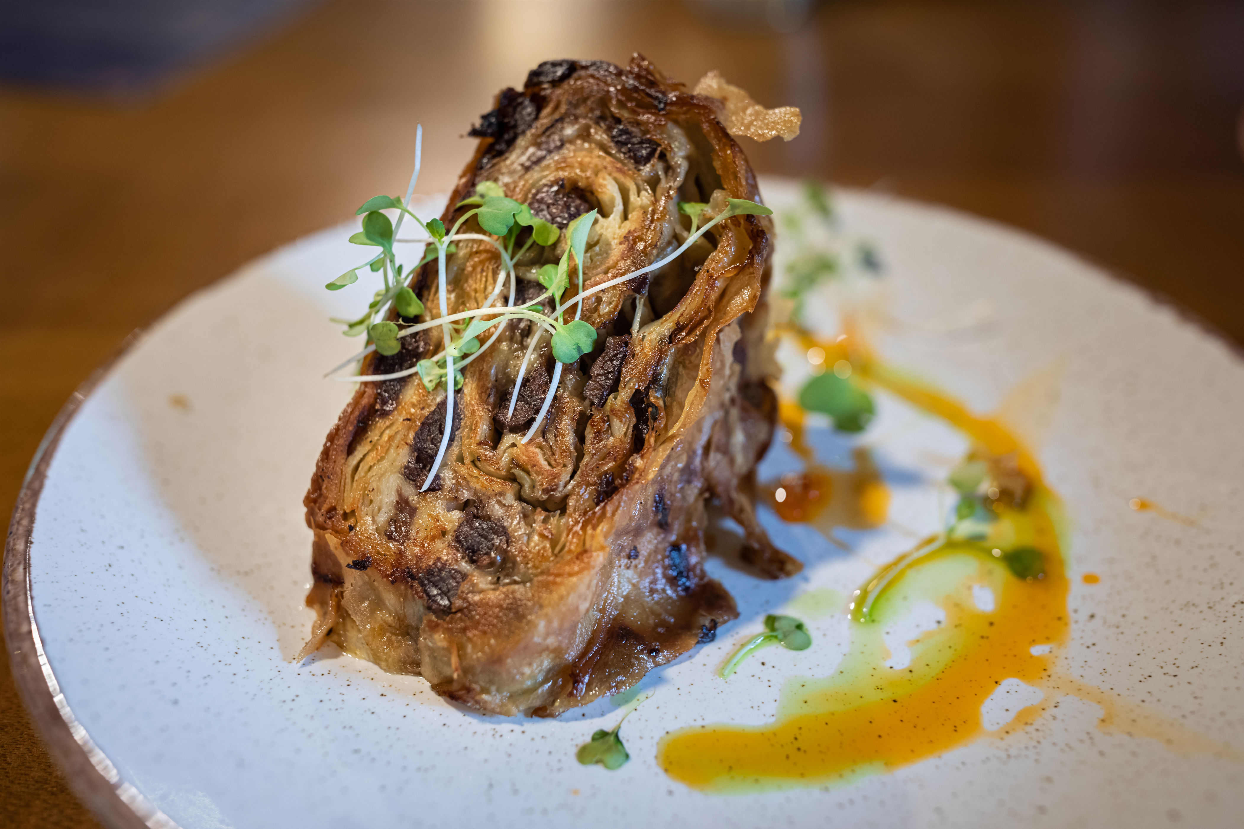 - Pai Tatar berlapis (pieróg), lembaran adonan tipis dengan mentega dan daging berbumbu yang dipanggang hingga renyah.