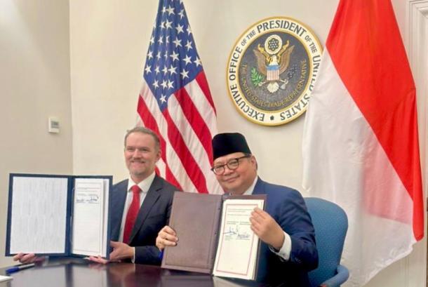 Menko Perekonomian Airlangga Hartarto melaksanakan penandatanganan dokumen Agreement on Reciprocal Trade (ART) di USTR. – (Kemenko Perekonomian)